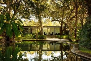 The Eugene Knotts House, located in Yankeetown, Levy County, Florida, is a locally significant example of the mid-century Sarasota School of Architecture designed by master architects Jack West and Ralph Twitchell. The Sarasota School of Architecture is defined by the use of modernist features adapted to the heat and light of Florida’s tropical climate. The 1953 building’s flat roof, extensive use of glass and open floor plan attempt to blur the lines between interior and exterior space, embracing and mitigating the impact of the sun on the building and its occupants. The building’s construction incorporated the most up-to-date building materials and techniques of the time, and was designed specifically to complement its location. As one of the rare buildings of the Sarasota School to be built outside of the Sarasota region, the Eugene Knotts House is a rare resource. The Eugene Knotts House is currently a private residence.