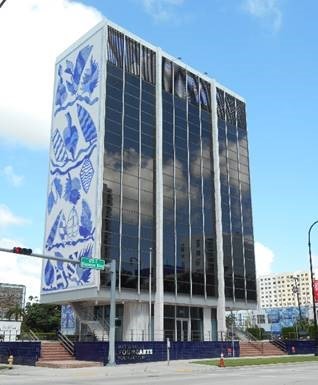 The Bacardi Complex, located along Miami's Biscayne Boulevard within the city's Edgewater neighborhood, was first built in 1963 to serve as the headquarters for Bacardi Imports, the American arm of the well-known Bacardi spirits company. Following the post-Revolutionary Cuban diaspora of the 1960s, Bacardi transitioned a large part of their commercial activity to the United States. The complex consists of two International-style buildings built in a plaza constructed on top of an underground parking garage. The complex is a distinctive and iconic feature of downtown Miami's architecture. The two buildings in the Bacardi complex are notable for their uses of steel and glass, each featuring imaginative cantilevered overhangs as the bulk of each building. The 1963 Bacardi Imports Tower is decorated with over 28,000 blue and white azulejo tiles painted and assembled by Brazilian artist Francisco Brennand.