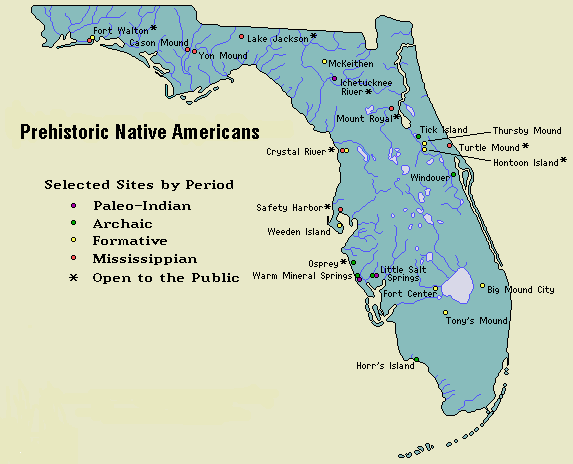 Food sources shifted to small game and shellfish. Populations increased and some groups moved inland to are as more suitable for growing corn, beans, squash, and other crops. Different styles of pottery decoration became unique to certain regions. Some groups began burying their dead along with elaborate pottery and other goods in earthen mounds. By A.D. 1000 the Mississippian culture, originating farther north and eventually including much of the Southeast, extended into Florida. Today the only evidence of these first Floridians is contained in those remaining archeological sites that represent dozens of distinctive Indian cultures.