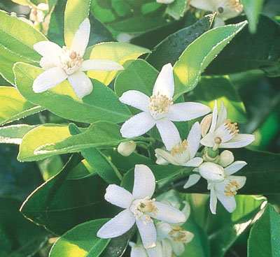 The blossom of the orange tree (Citrus sinensis) is one of the most fragrant flowers in Florida. Millions of these white flowers perfume the atmosphere throughout central and south Florida during orange blossom time. The orange blossom was selected as the state flower by the 1909 legislature.