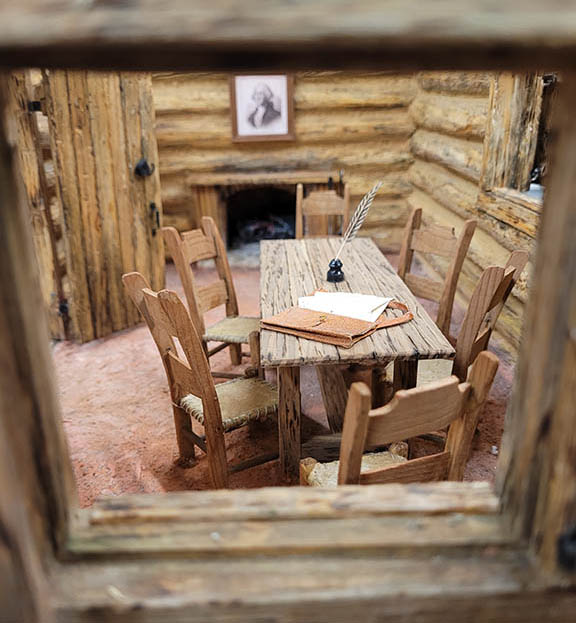 Conrad Brayman, and artisan with the Museum of Florida History designed and built the cabin. Which was a challenge in itself, as no one actually knows what the first capitol actually looked like. Photography was in its infancy at the times, so there no photographs of the original structure. A full-sized replica cabin was built for the Centennial celebration, but it is unclear what information that design was based upon. The decision was to create a model that is typical of a structure from that time and place. But what the actual first capitol building looked like does remain a bit of a mystery and is lost to time.